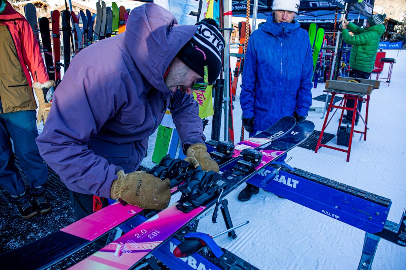 Setting up a lucky skier with some Faction Prodigy 2.0s.