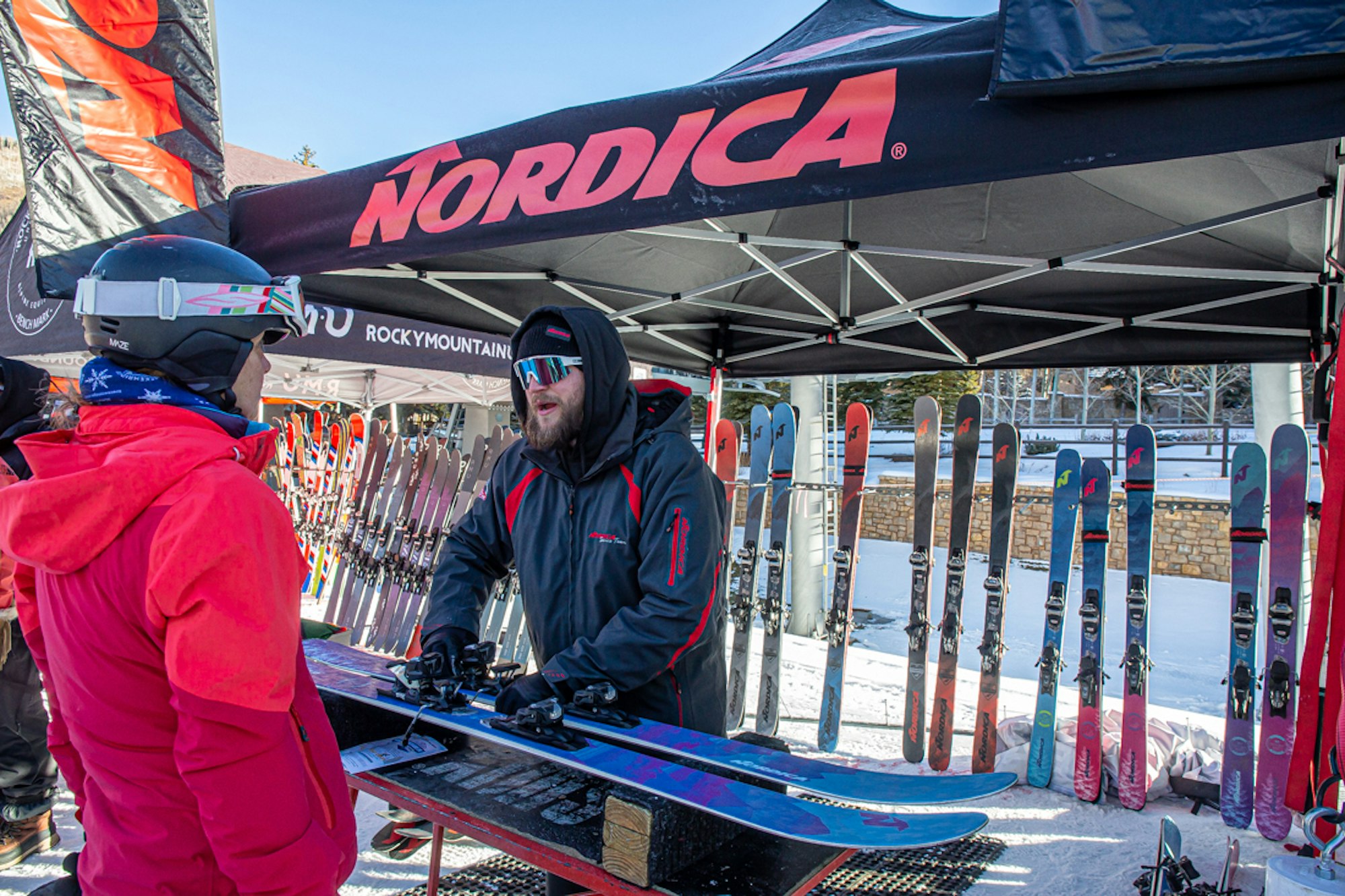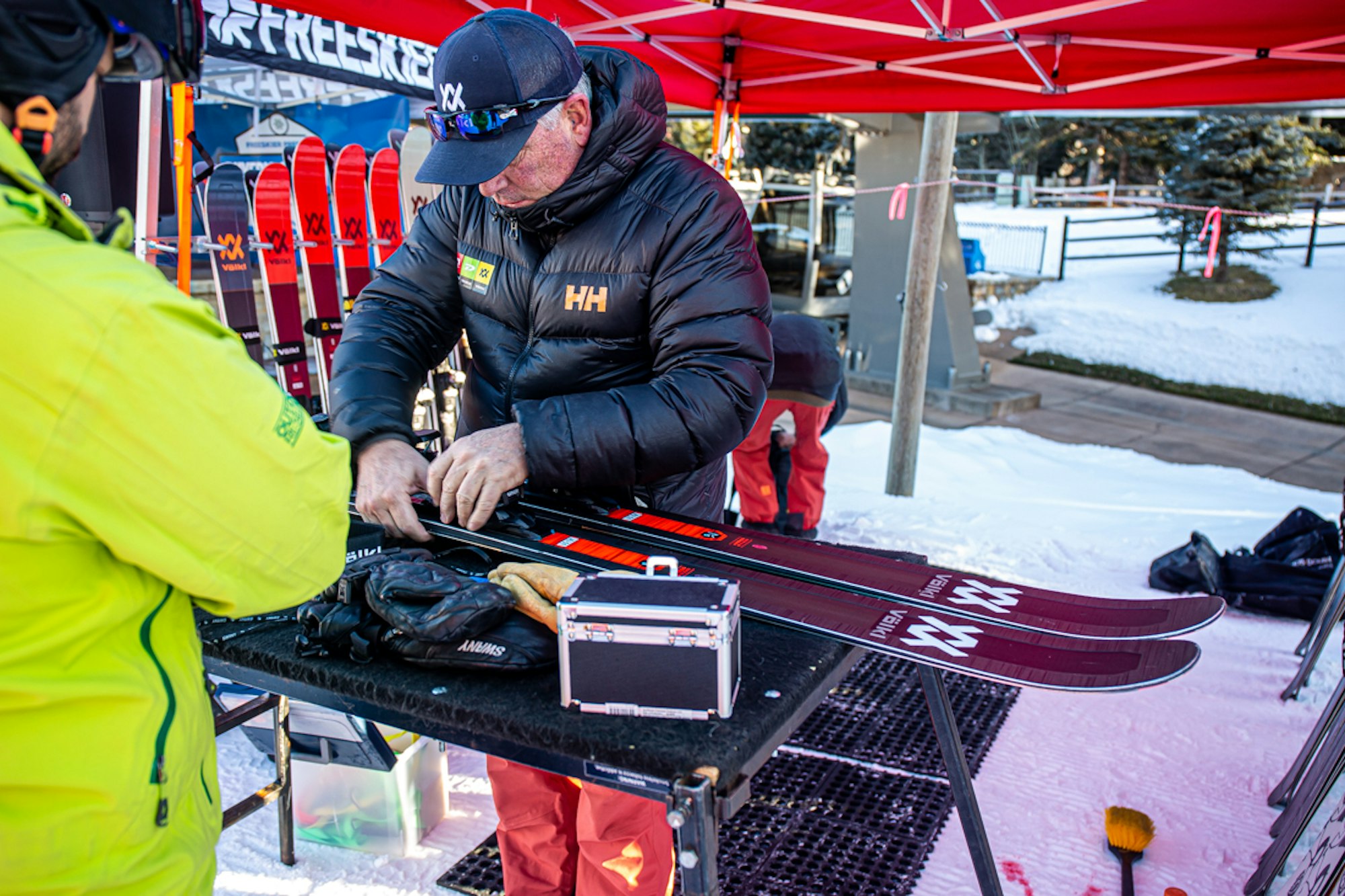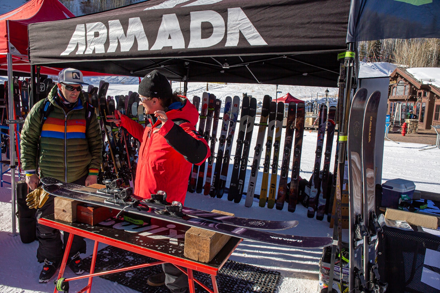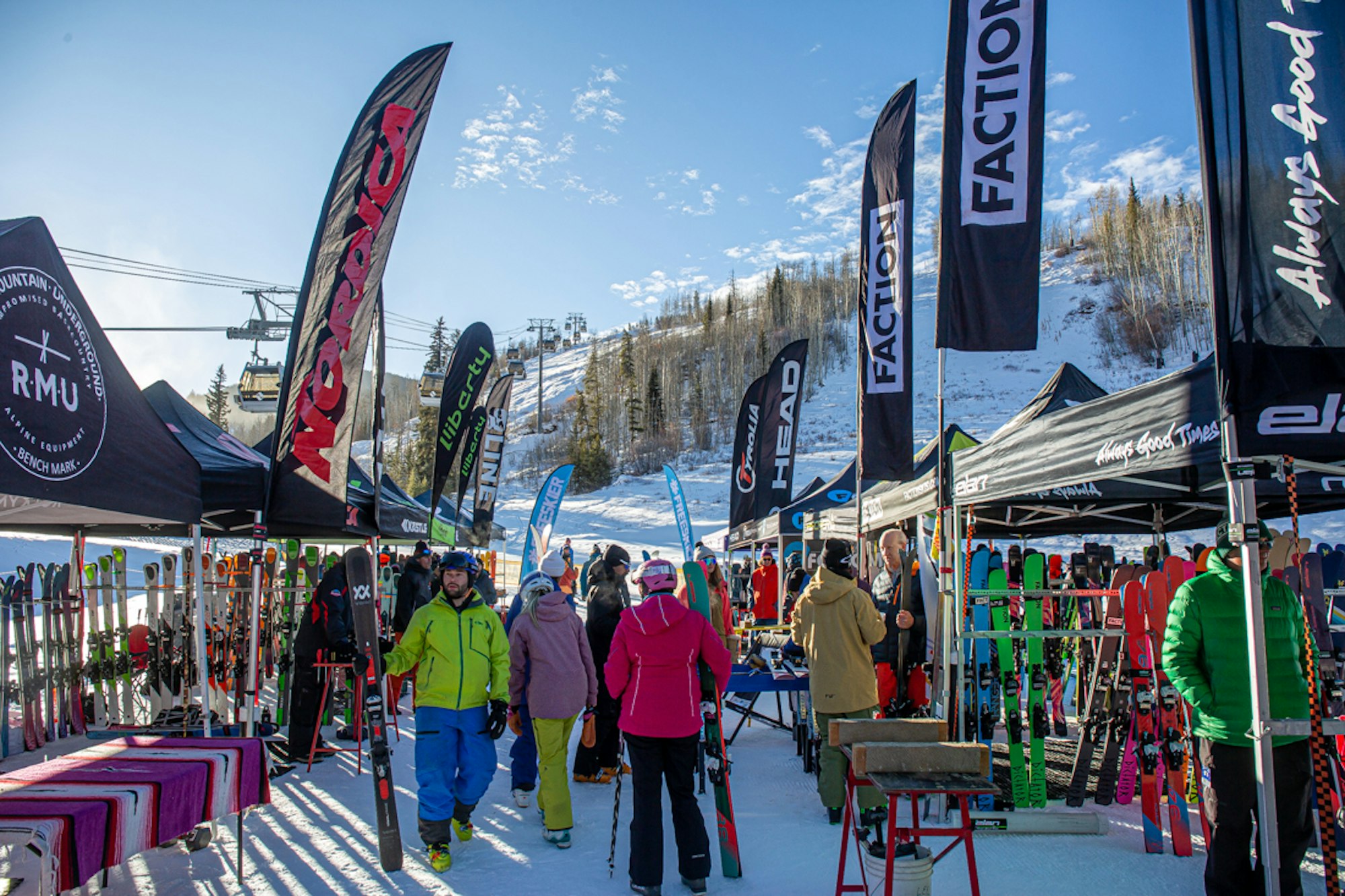 The ski gods graced us with a picture-perfect early-season ski day for the first stop of the inaugural FREESKIER Buyer’s Guide Live Demo Tour in Vail, Colorado. The sun was out and the stoke was fiery as skiers by the hundreds––hungry to test out the best of this year’s skis from 20 different brands, including Armada, Atomic, Blizzard, Dynastar, Elan, Faction, Fischer, Folsom, HEAD, ROMP, RMU, Icelantic, K2, Kästle, Liberty, Line, Nordica, Rossignol, Salomon and Völkl––lined up at the base of Gondola One long before the lifts started spinning at 9 a.m.