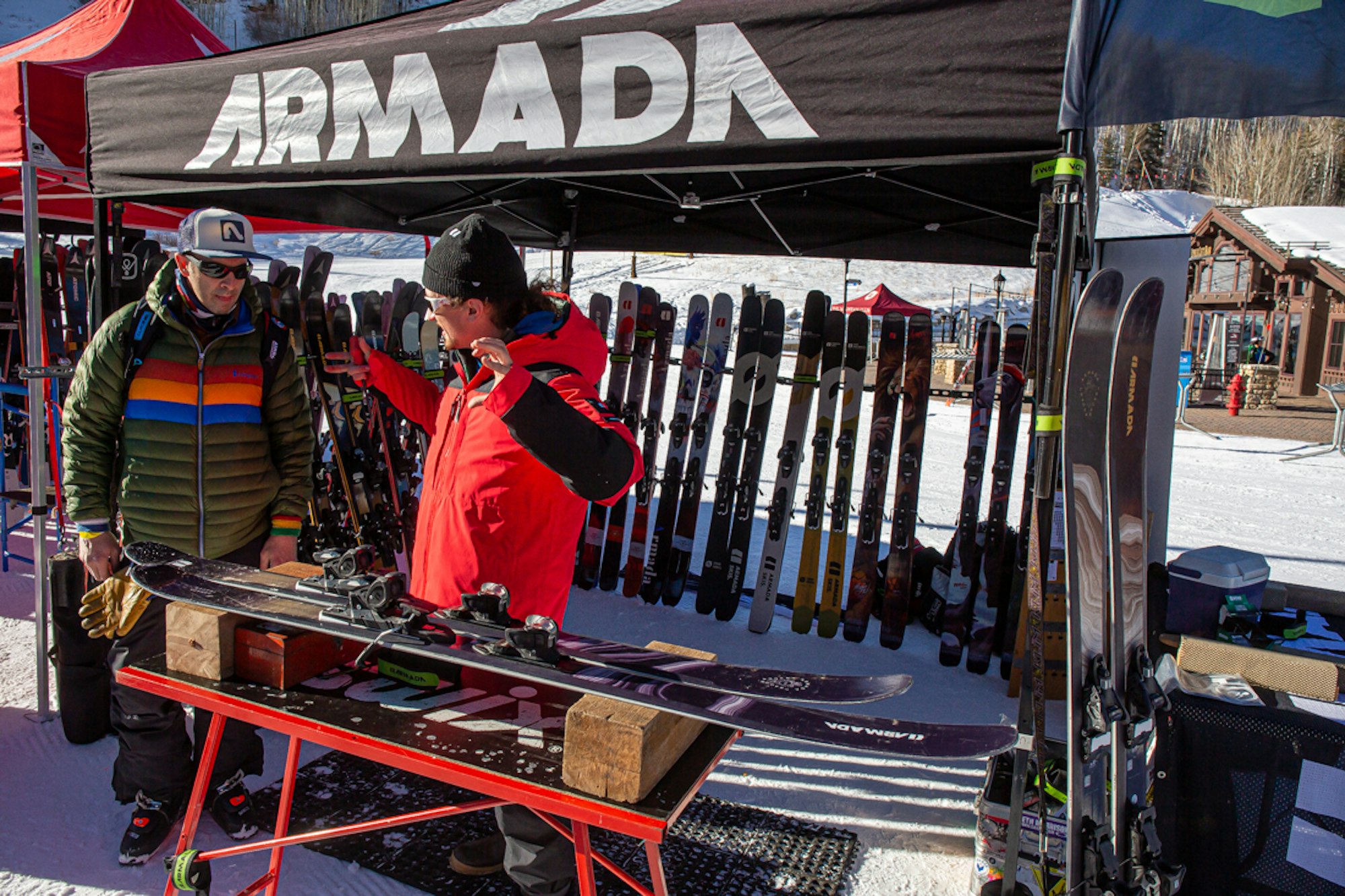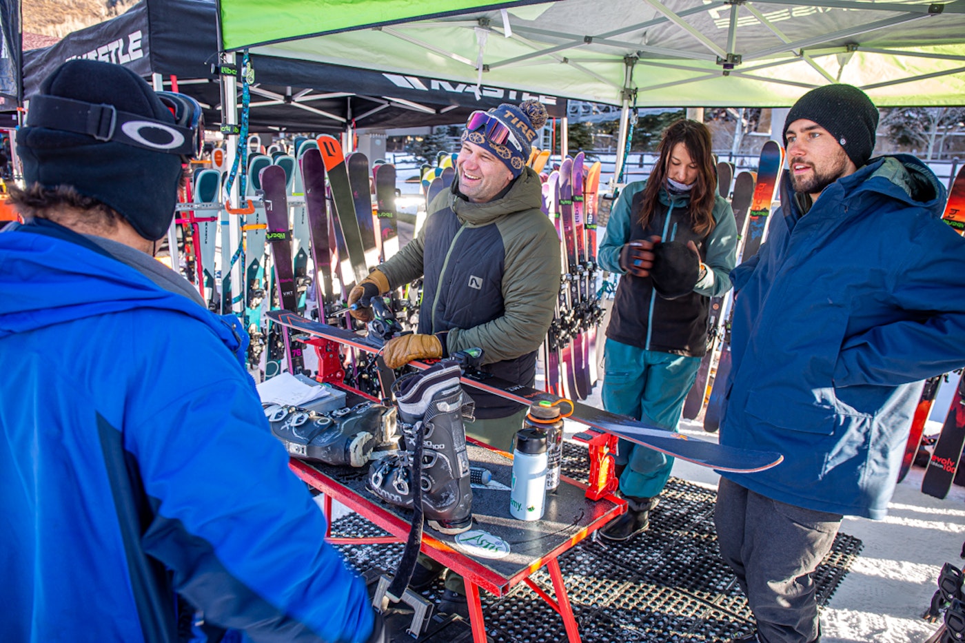 Skiers were eager to get the rundown from Armada.