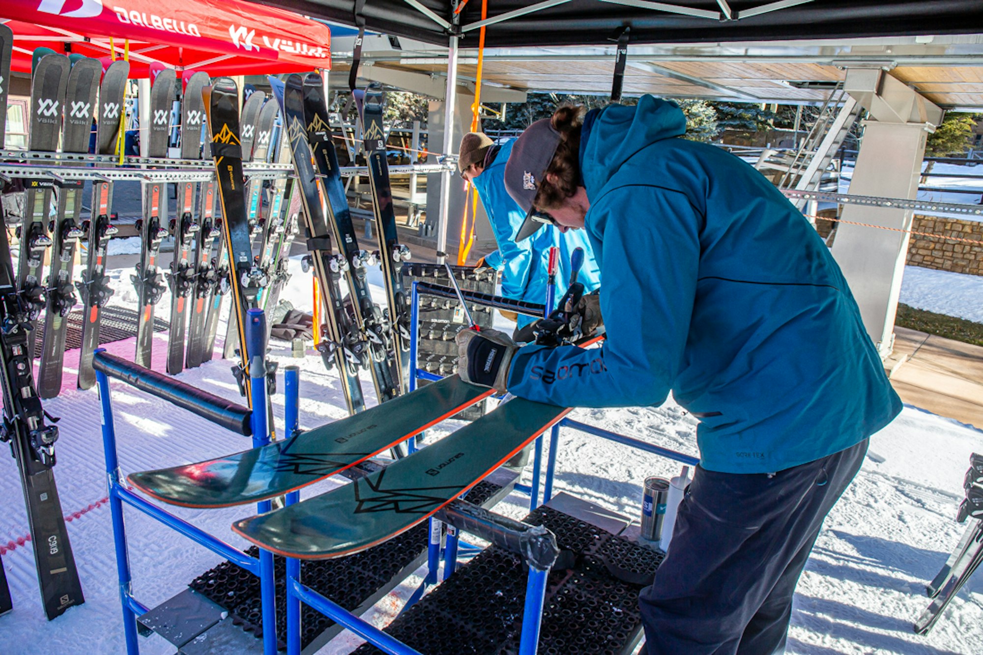 Prepping a pair of K2 Mindbender 99Ti skis.
