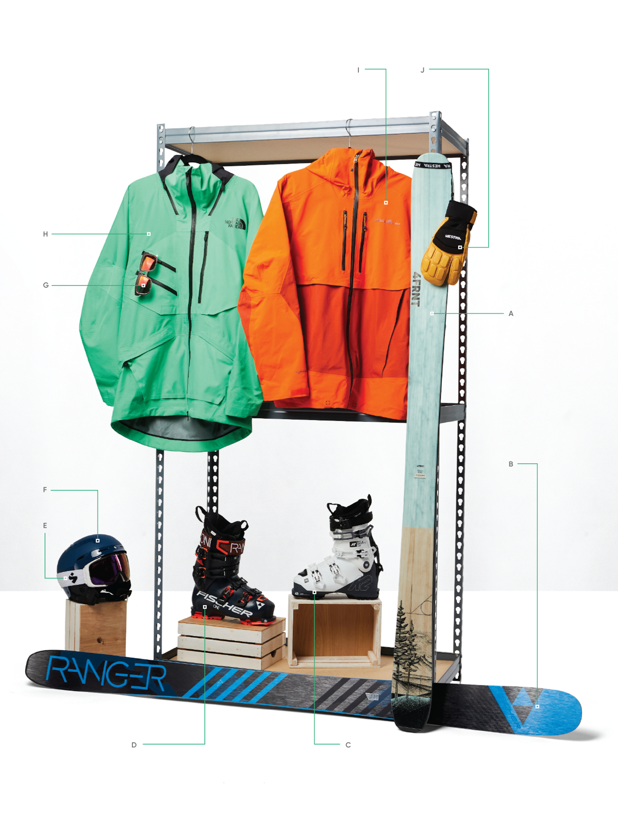 GORE-TEX shells are common out West, ideal for generally warmer temperatures experienced on the day-to-day. Skis capable of surfing a deep snowpack and wind-blown features do well on the Left Coast.
