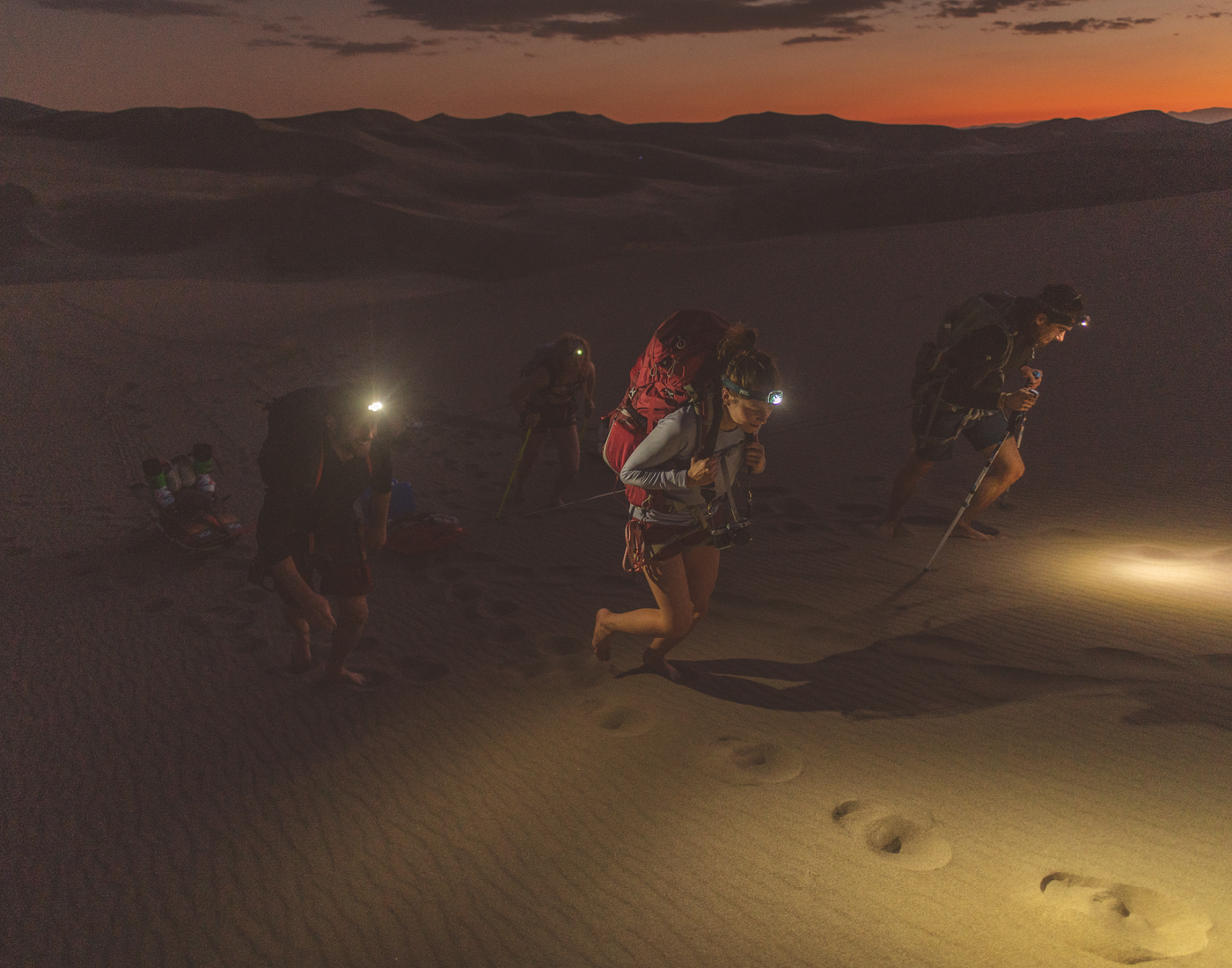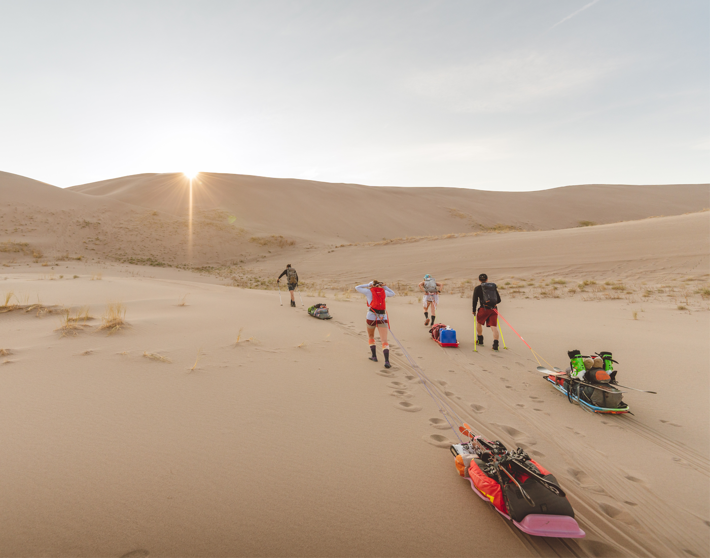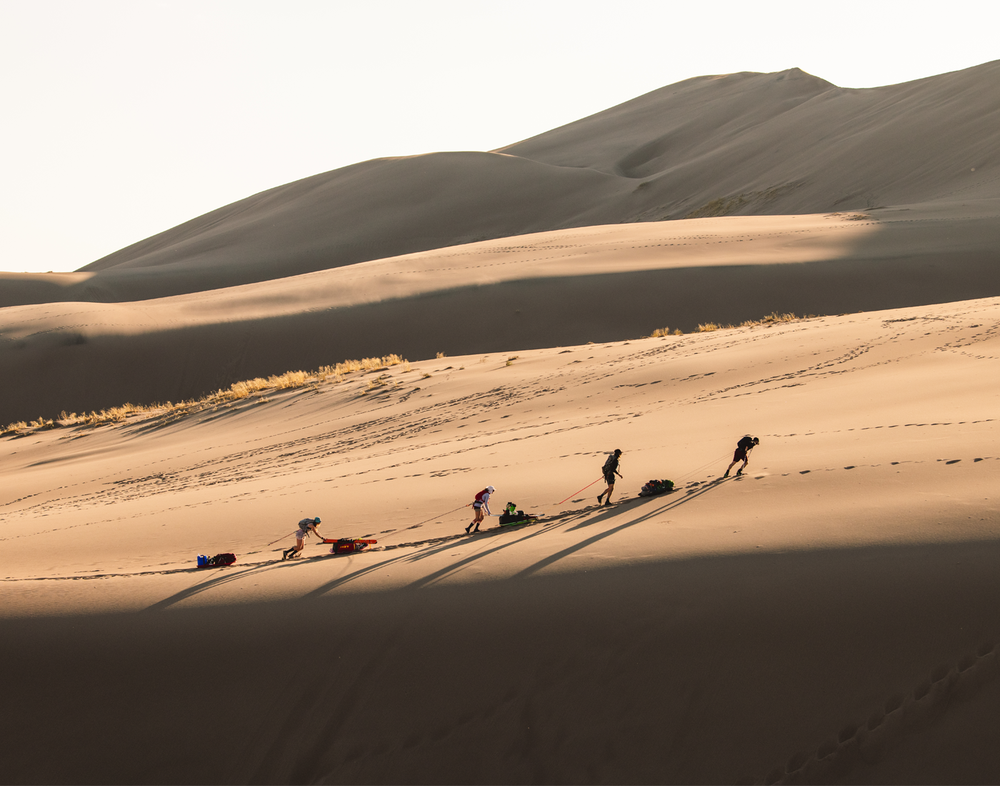 It didn’t take long to jettison Christian’s skis. And it became apparent that the water—10 gallons in total—was our biggest hindrance. There was a short discussion of dumping some of it, but the desperate landscape surrounding us urged against such rash cuts. We trudged on. All afternoon we labored and sweated, human tugboats pulling on sinking ships in a sea of sand.