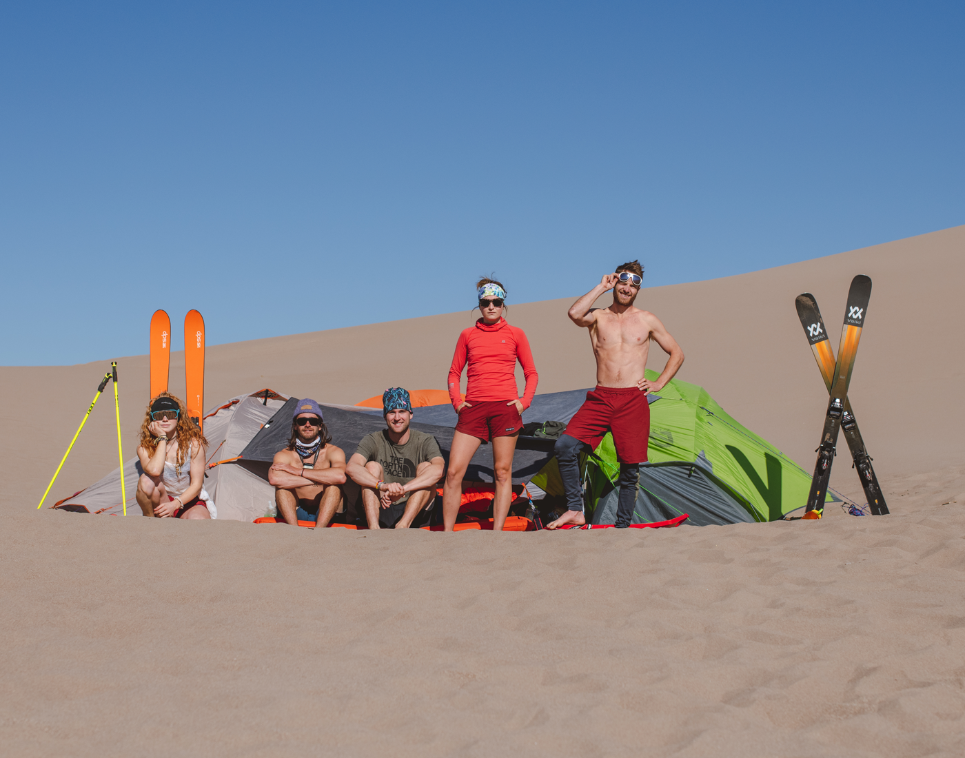 We spent the rest of the day lounging in our makeshift tent-shanty or scouting from the tops of the long, sandy ridges. When the day cooled and the evening light returned, we were going to be ready. And we were. Like a five-man combat squad, we flanked each objective with stunning efficiency, transitioning from bare feet to ski boots at the top of each line while our friends watched from a half a mile away. Stephen cooly confirming over the radio that he “got the shot” while we regained our strength at the bottom of each line.