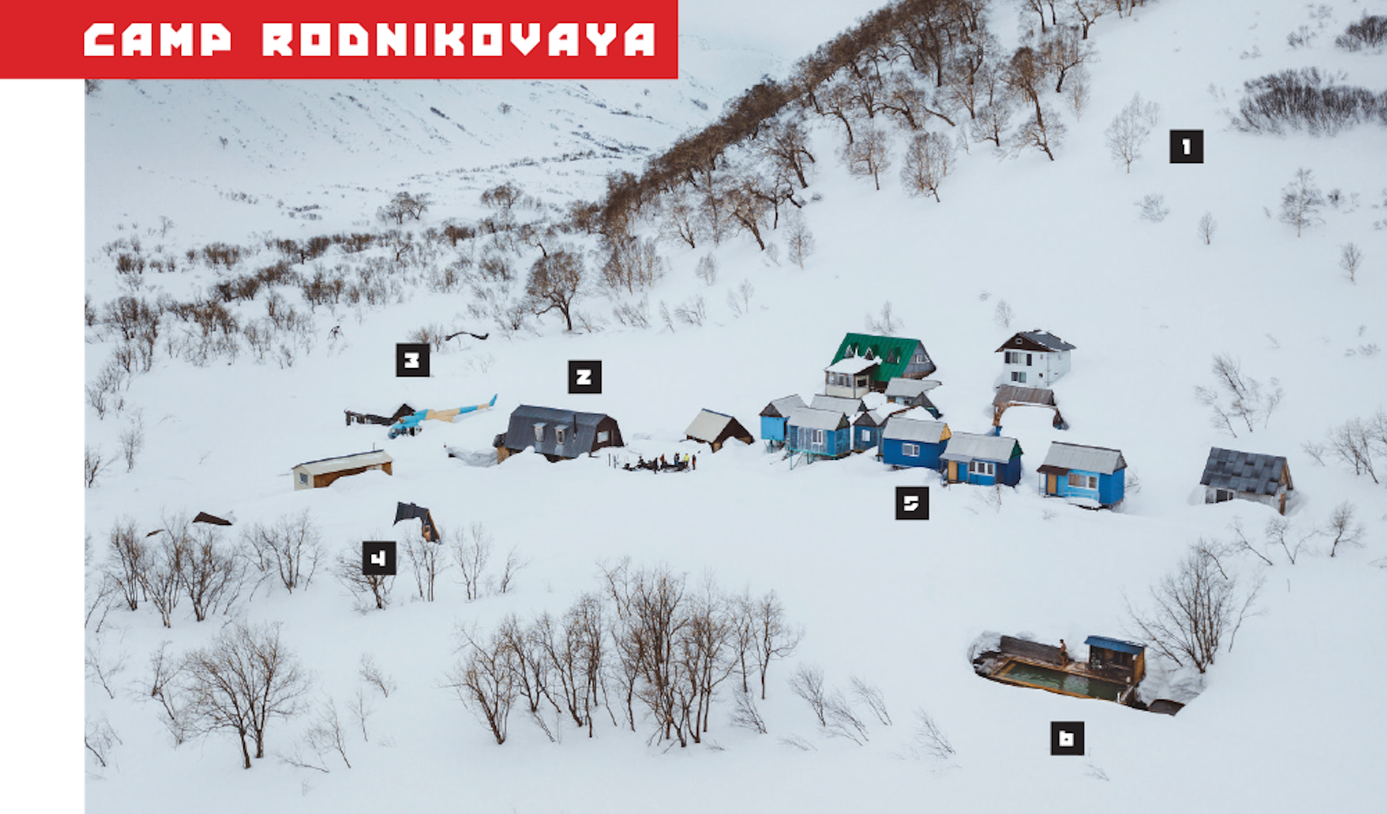 The heli-ski pilots arrived overnight and bunked upstairs in the main cabin. They didn’t talk much. After a travel delay, Fischer’s Matt Berkowitz and team athlete Kyle Smaine had also just arrived. We piled into the heavyweight military flier turned powder chariot at 11:30 a.m., with little to no idea of what to expect from our first heli-assisted turns. Vladimir Junior, the heir of the Rodnikovaya throne, and Alexei, a hired guide from another Kamchatka heli-operation, Snow Valley, led our exploration into the ring of fire.