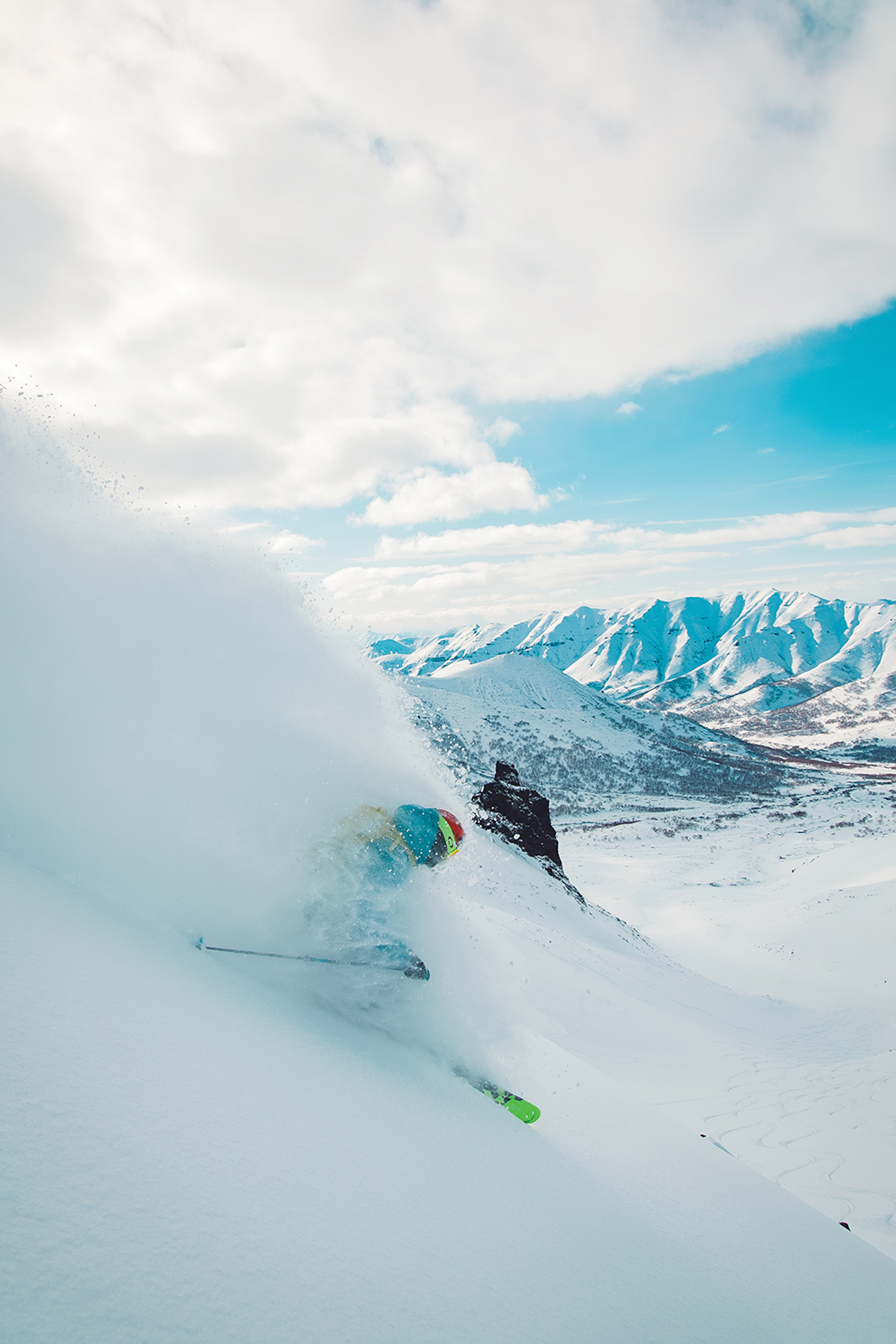 The Soviets made Kamchatka a military zone during the Cold War, and it remained closed to the public, including Soviet citizens, until 1989, which further shrouded the spade-shaped peninsula in mystery. Foreign visitors were allowed to travel there beginning in 1990, but even after nearly thirty years, the Kamchatka Peninsula remains unknown to the vast majority of the world. For those aware, it was likely in reference to the growing fly-fishing industry developing in the summer months, or from the few images of surfers who voyaged there to ride its hostile waves. Travis Rice, the snowboarder, came here once. The story of skiing in Kamchatka, however, is still unfolding.