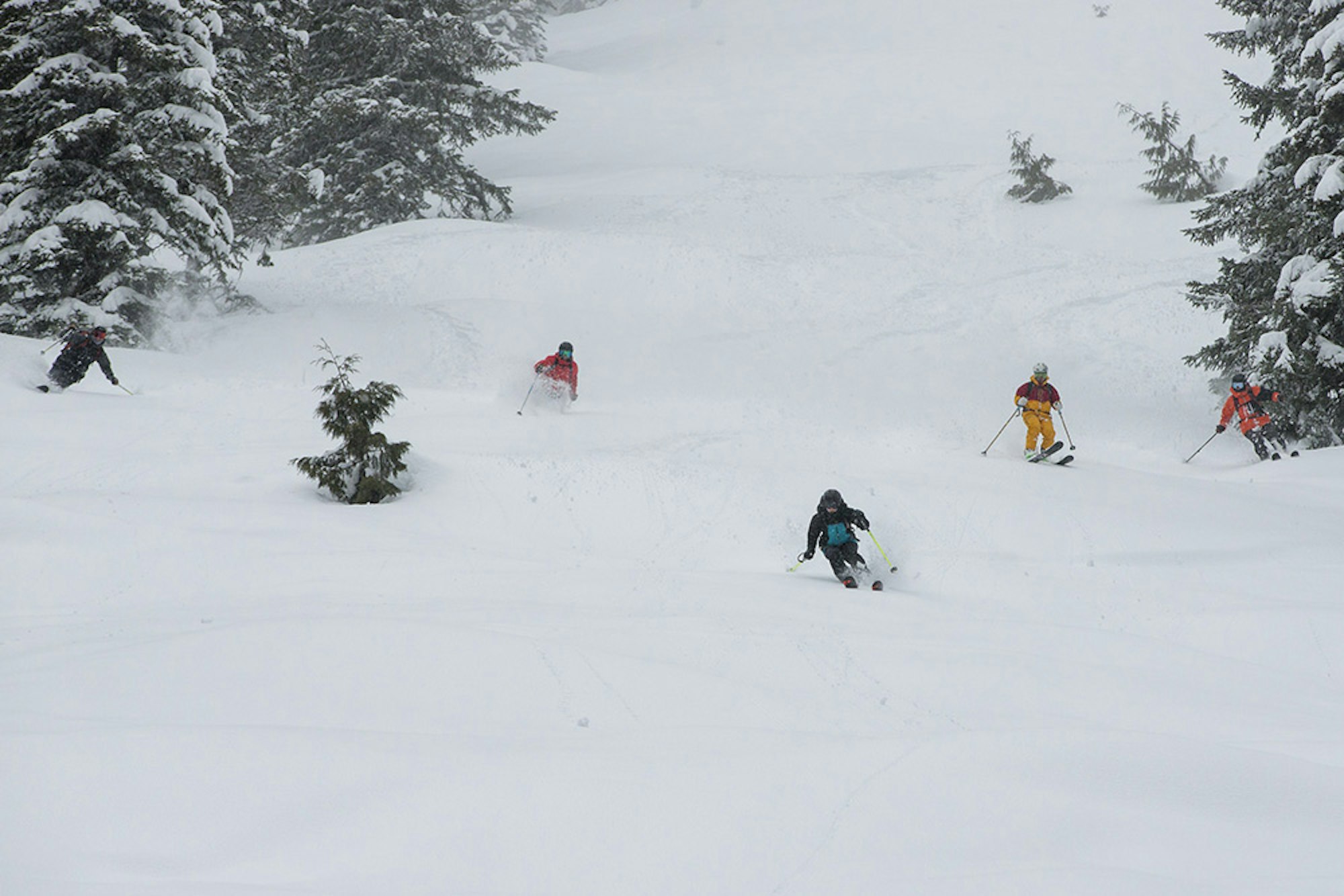 Let’s get something straight. I love skiing mustache-deep snow. I’ll play hooky from work for it. I’ll rearrange plans and shift travel for it. I am a firm believer that powder skiing is better than sex. The slow-motion symphonic happiness eruption that only occurs when schmearing turns and floating through deep white fluff energizes me in a way that is indescribable. But I will not ditch pals for it. Plus, so much of my powder day joy comes from watching my friends descend into the depths and experience that feeling for themselves. Powder skiing, like life, is a team sport.
