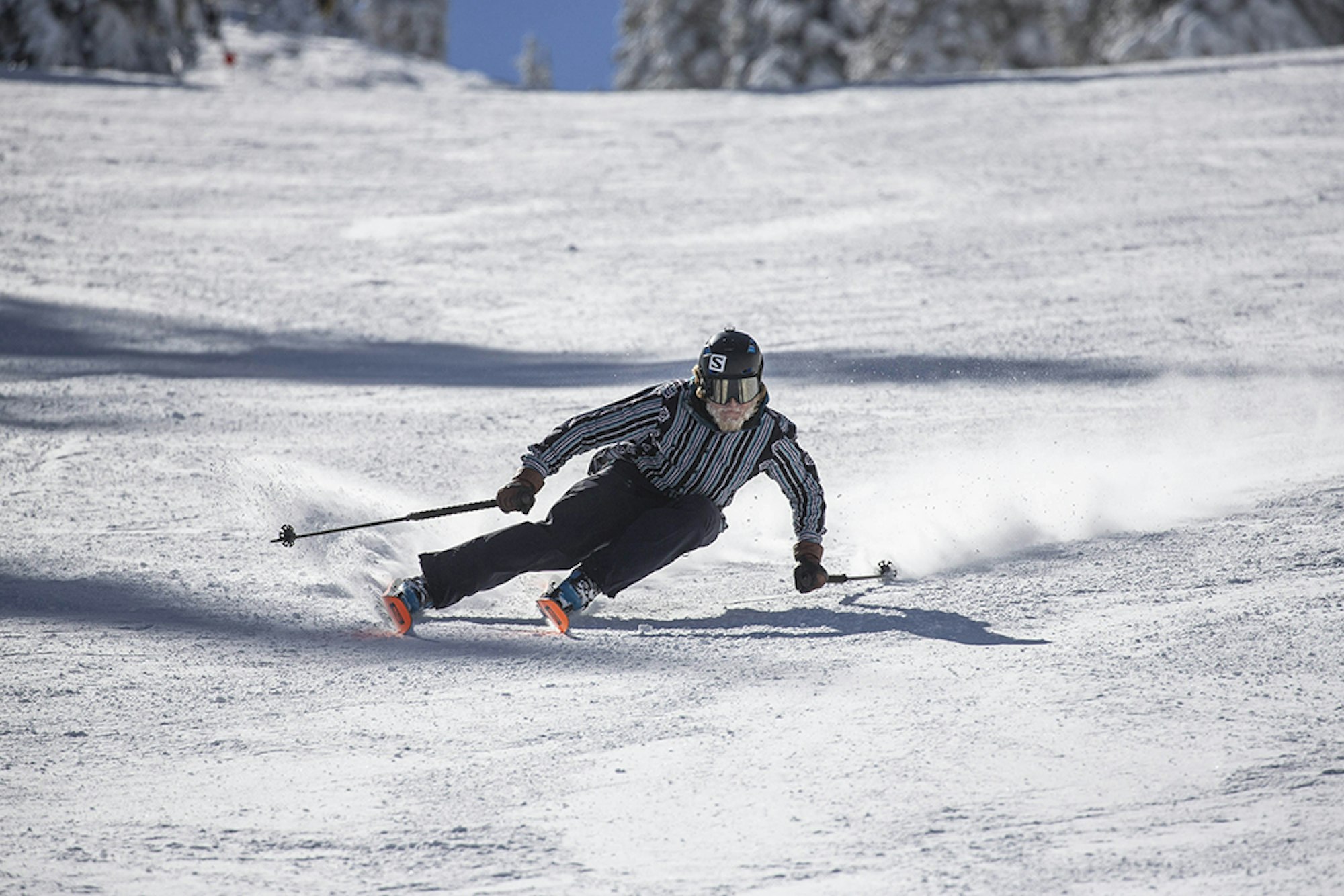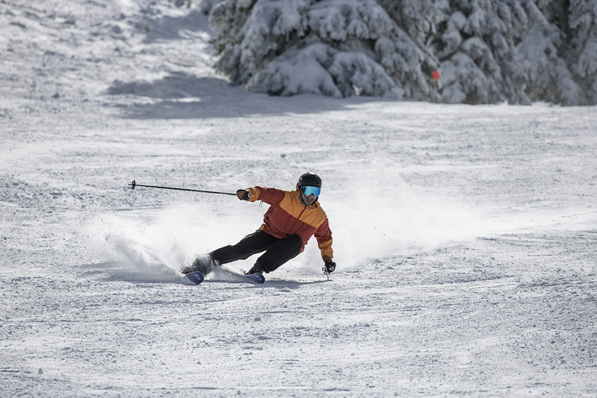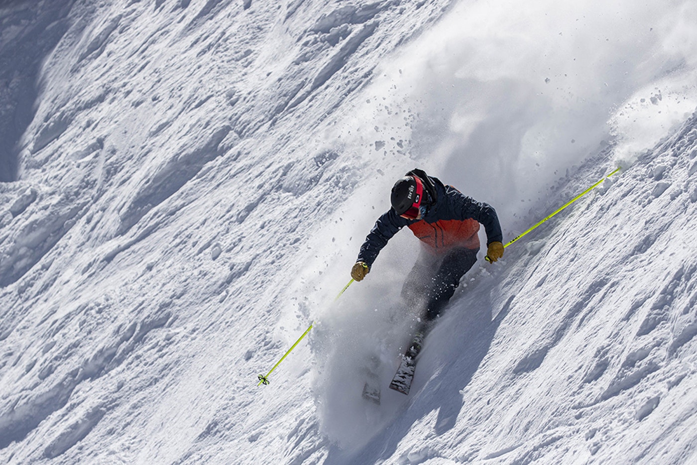 Drew Petersen archs a turn at the 2019 FREESKIER Ski Test in Aspen.