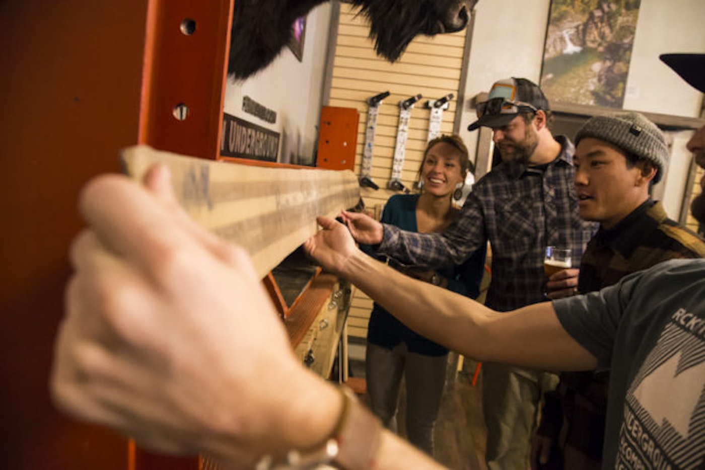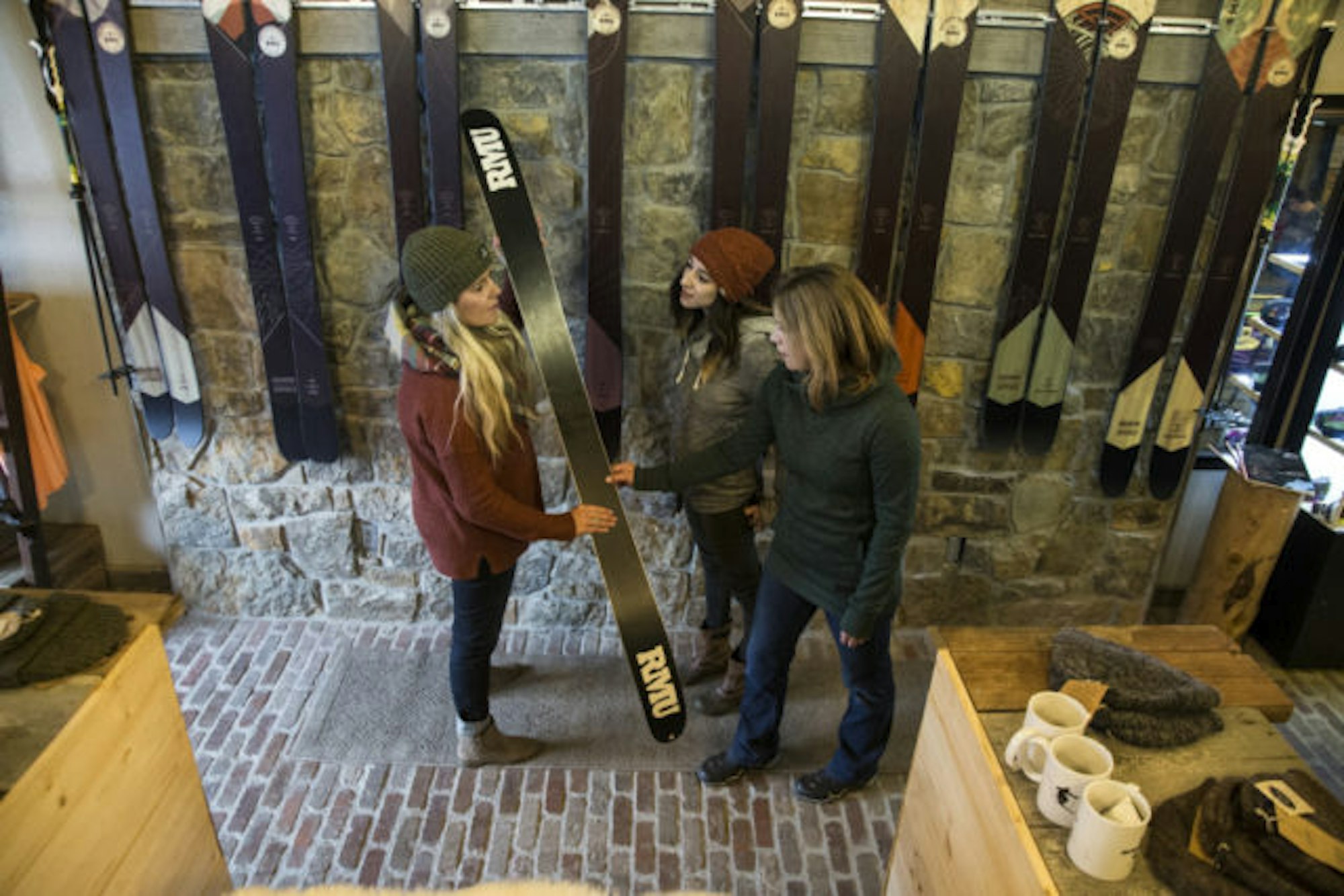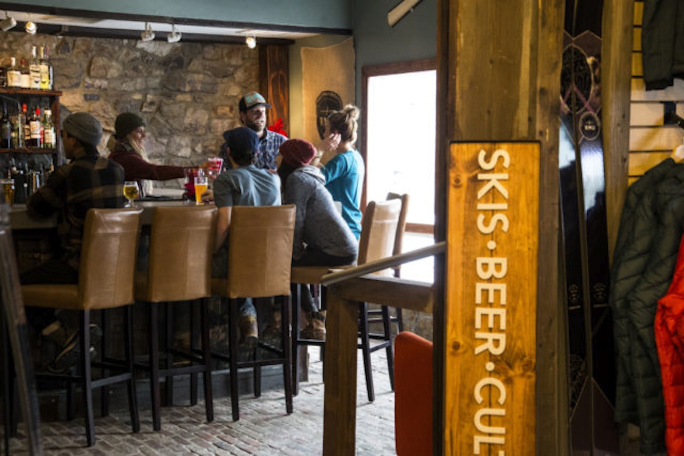 This season, the brand made a bold move and renovated part of its space on historic Main Street into a watering hole. For owner Mike Waesche, this project was a no-brainer for a few reasons—including the simple fact that “skis and beer go together like skis and beer.” (Think about it.) The main reason RMU carried the project out, though, is to include its consumers in the ski-building lifestyle and provide a behind-the-scenes experience.