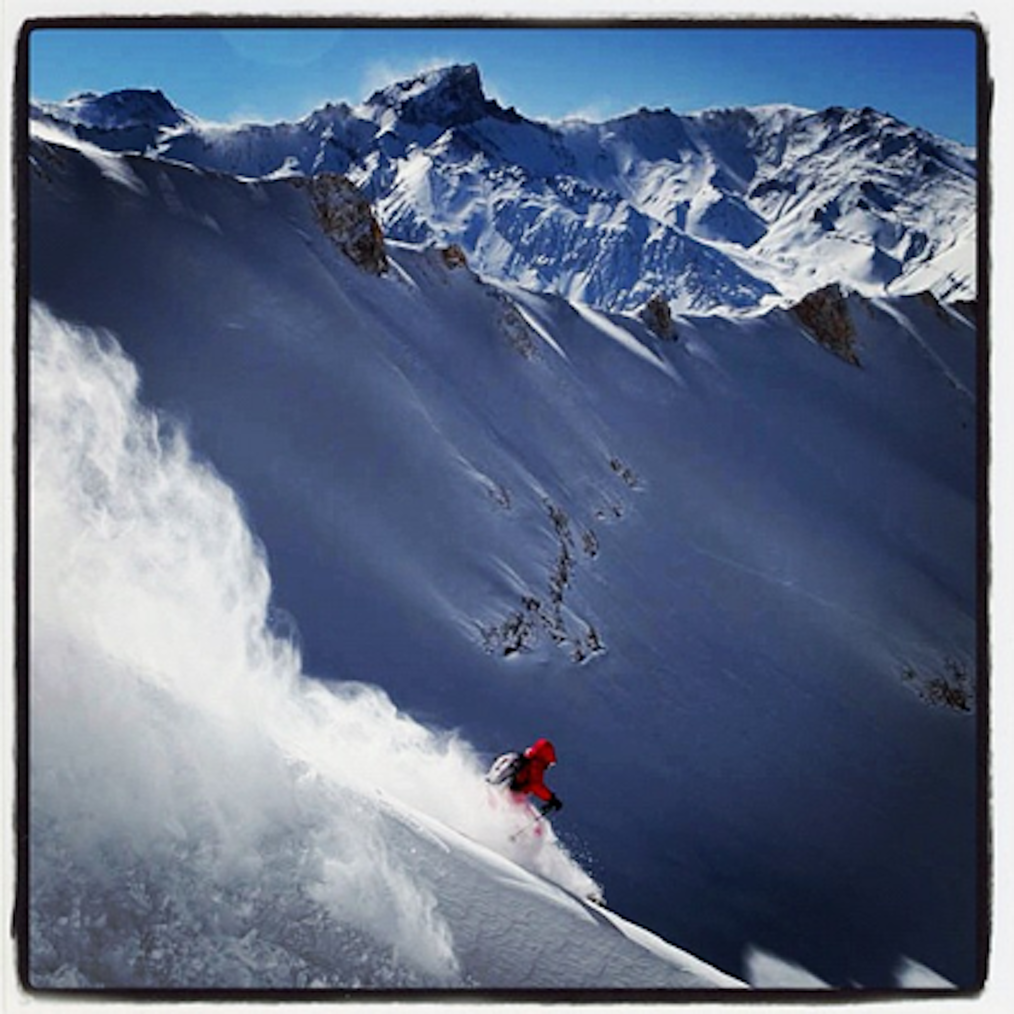 βAmazing day of powder skiing and shooting w/ @acpictures. He says best ever at @SkiPortillo.β Posted by @steepskiing.