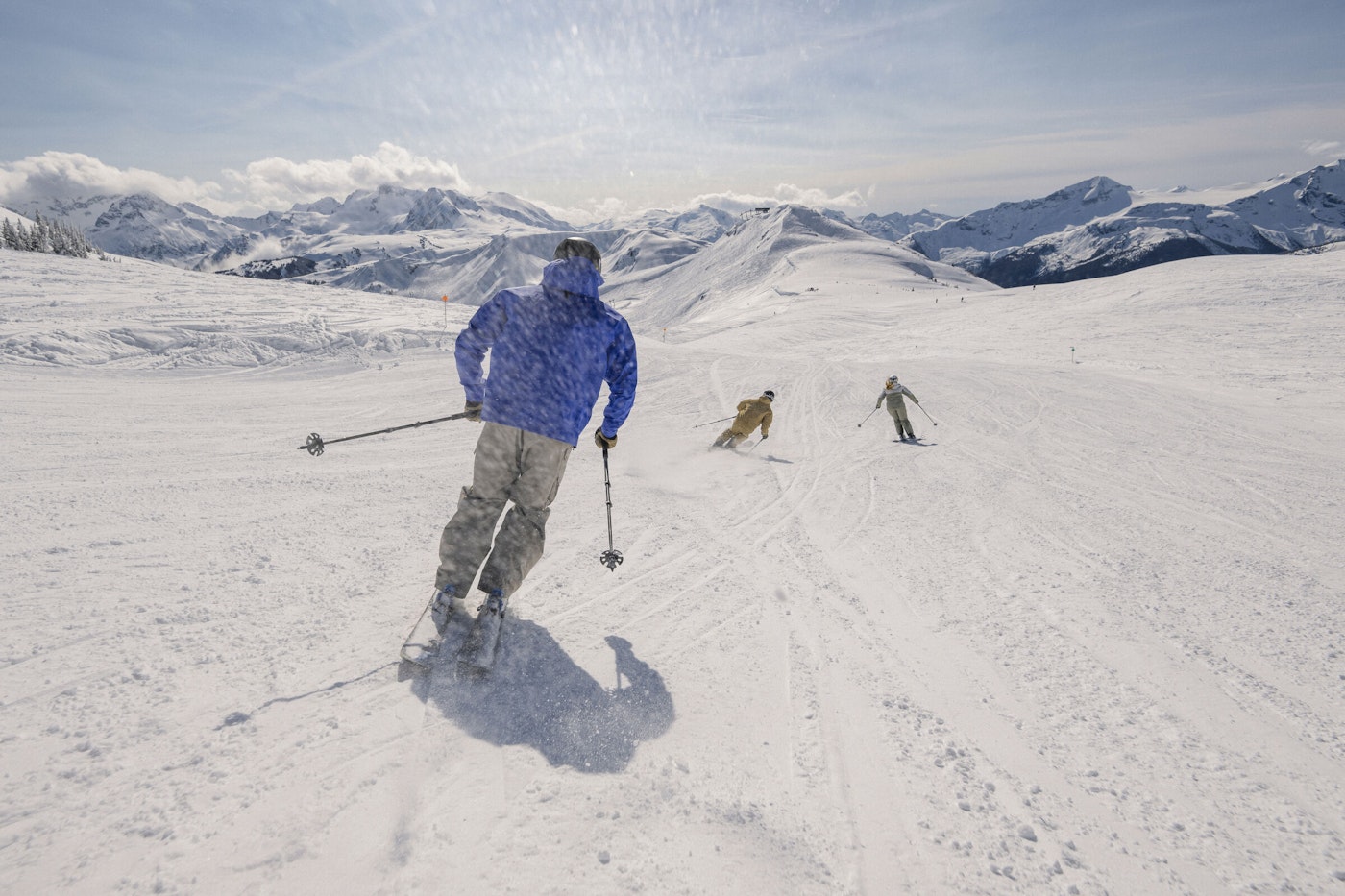 That scale, paired with over a mile of vertical, makes Whistler one of the best spring skiing destinations in the world. In March, you can almost guarantee finding fresh snow at the top of the mountain, terrain locals often describe as a freeride playground. A must-do is the Spanky’s Ladder bootpack, which provides access to four bowls, exposed spines and cliff bands, and often holds onto powder long after a storm. If you are looking for something more lowkey, the resort’s size and March snow mean that if you ask the right people, you might find yourself skiing fresh tracks. As April and May arrive, the mountain begins to ski like two different worlds. We’re talking chalky bowls and spines in the morning, giving way to soft, surfy bumps and spring park laps lower down as the sun begins to warm the mountain.