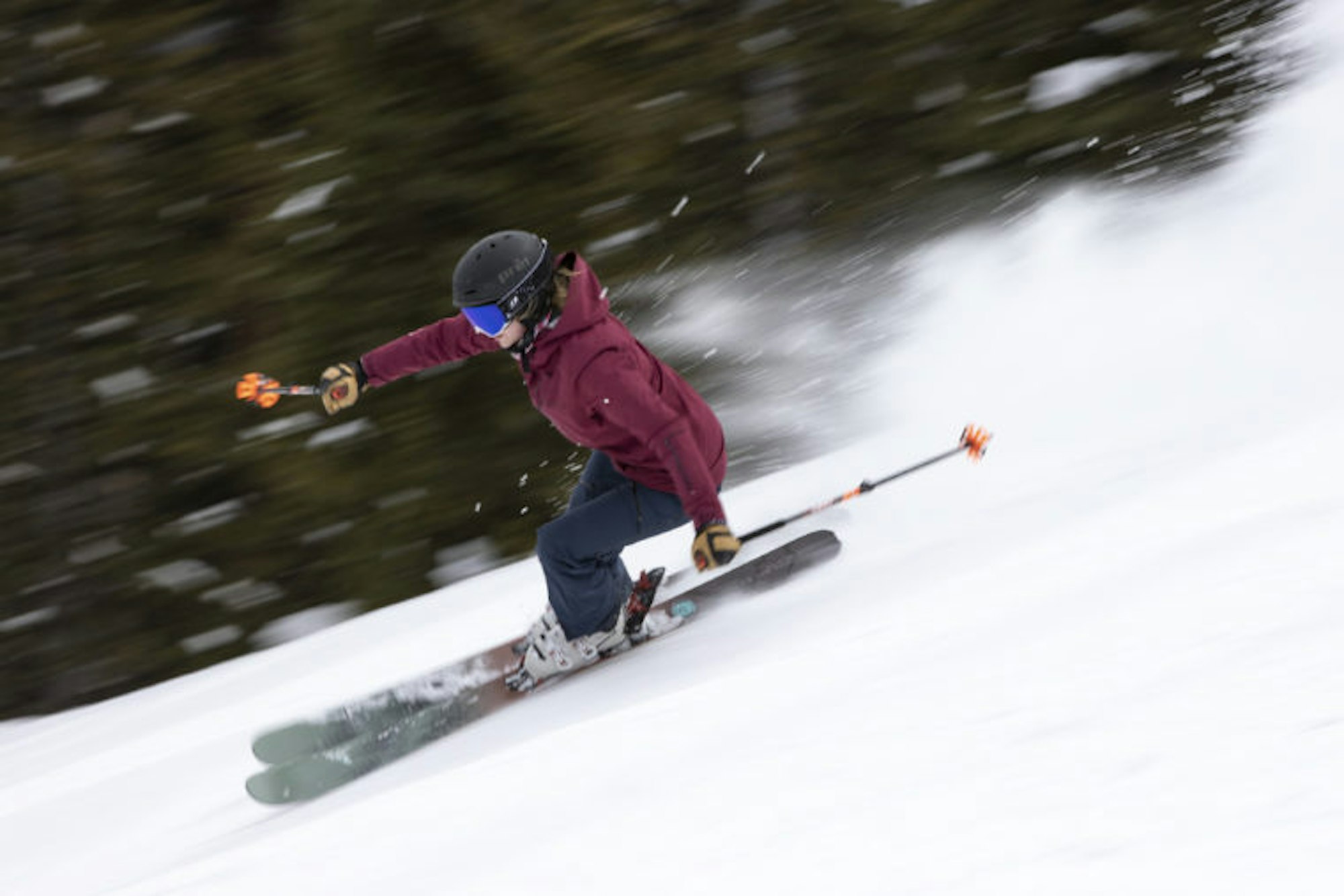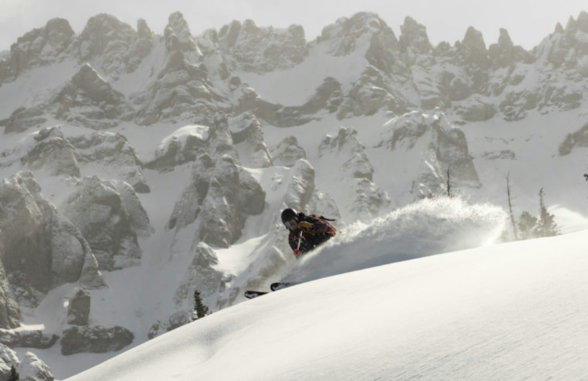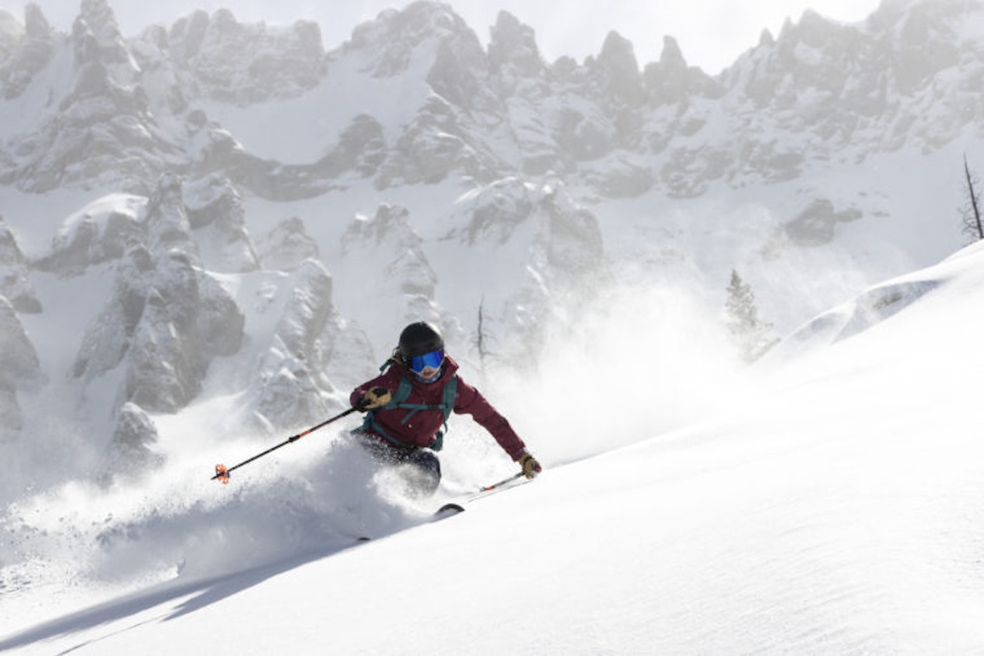 Curran ripping up the groomers of Telluride Ski Resort completely uninhibited.