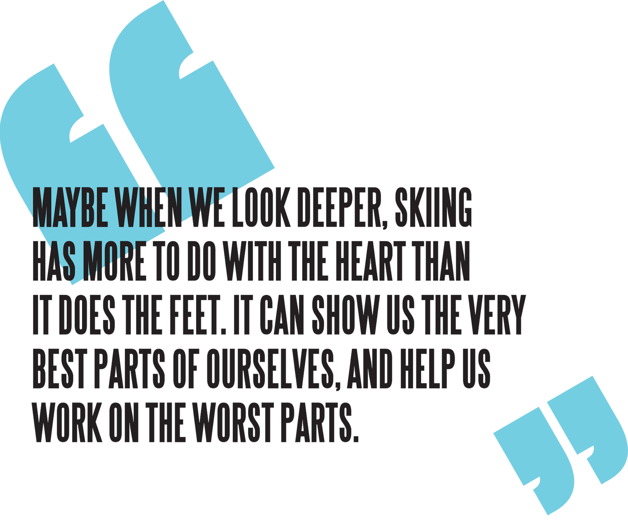 At surface level, skiing is merely a smile delivery system, a great way to goof around and giggle outside, just a bunch of grinning folks sliding around on snow. But maybe when we look deeper, skiing has more to do with the heart than it does the feet. It can show us the very best parts of ourselves, and help us work on the worst parts. It can teach us to drop the past, be in our boots and look forward to what’s in front of our tips. And for me, it all started from the first time I felt that energetic, zippy spring from a flexed ski travel through my legs and hit like a thousand-pound Fourth of July rocket in the center of my heart, a neon-electric confetti explosion across my soul.