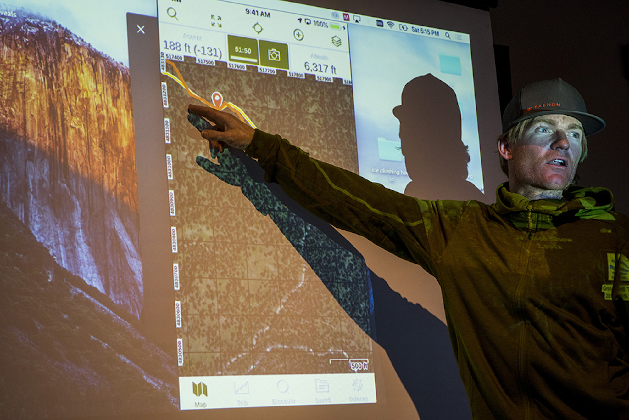 Educational seminars regarding route finding with IFMGA mountain guide Mark Smiley. Photo: Amber Baesler