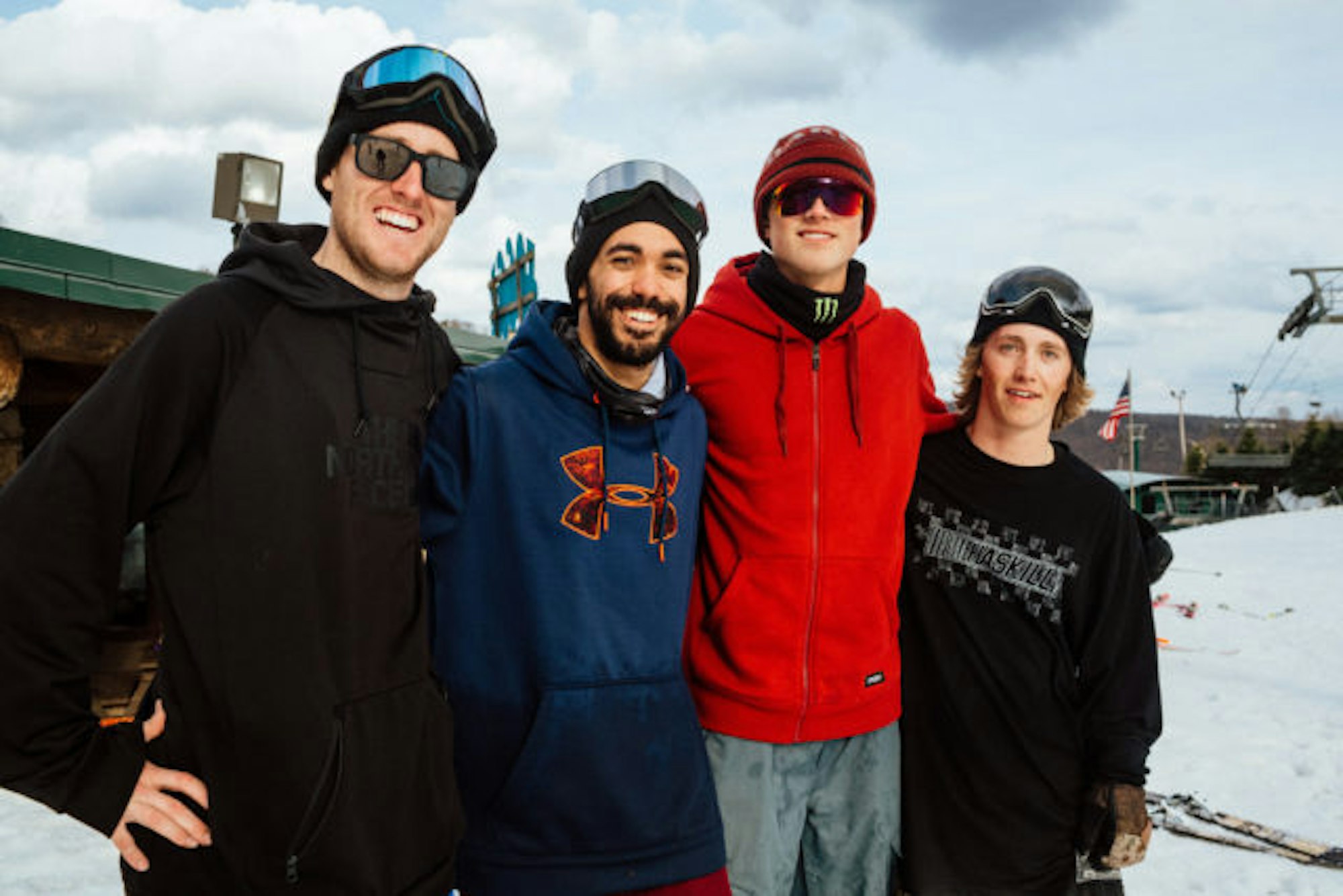 From left to right: Tom Wallisch, Noah Wallace (2015 Grand Prize Winner), Colby Stevenson (2016 Grand Prize Winner), Ethan Swadburg (2017 Grand Prize Winner). Photo: Nate Abbott.