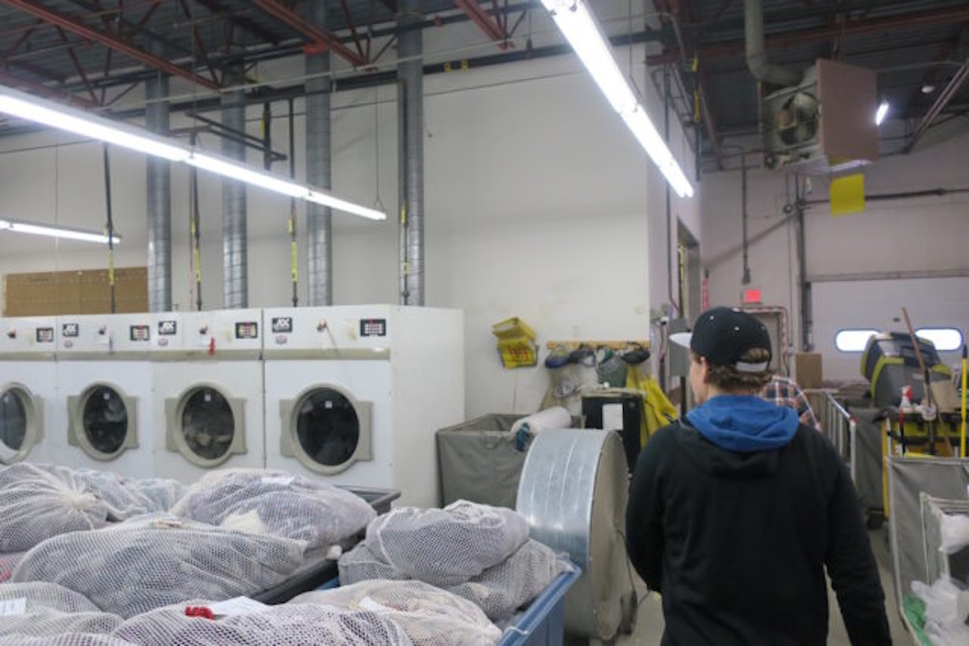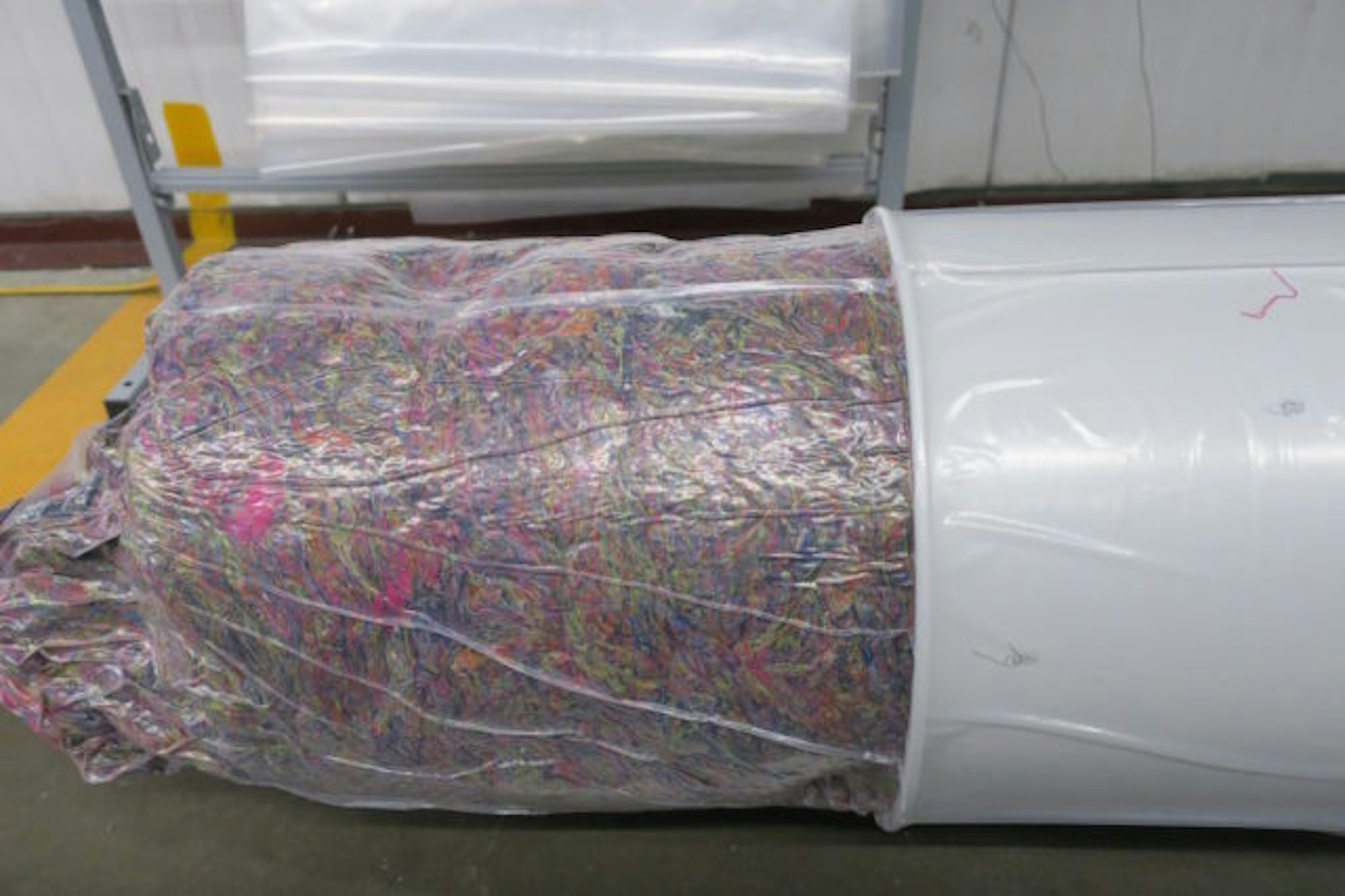 All those extra clippings are recycled into this machine and given to various businesses at no cost. Oftentimes, the material is turned into airline seats. How cool is that?