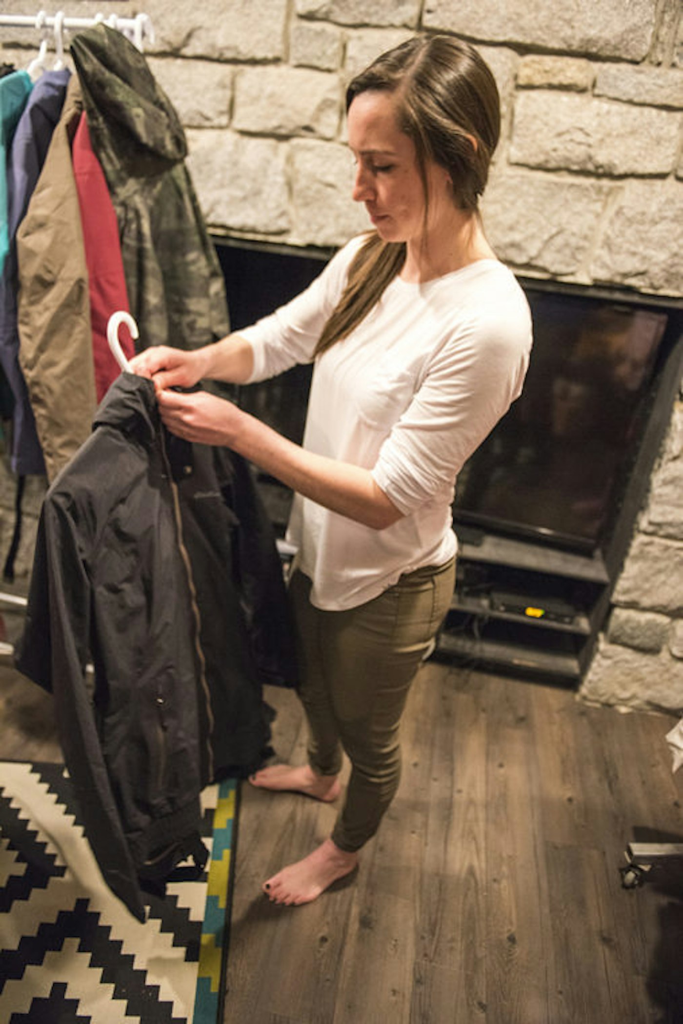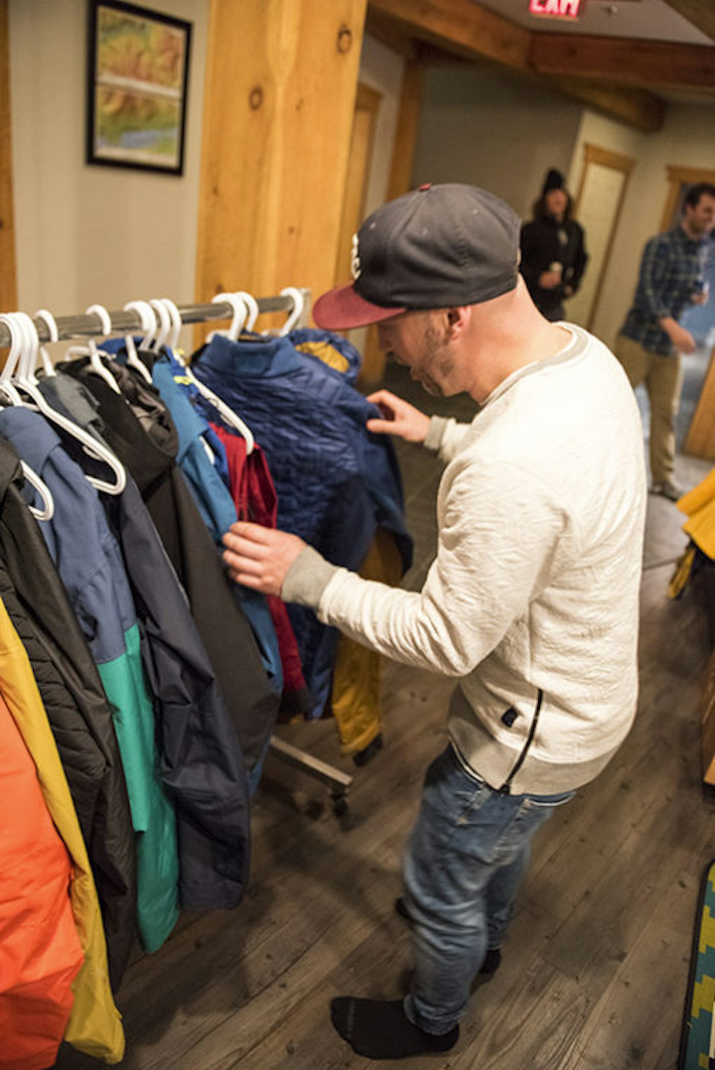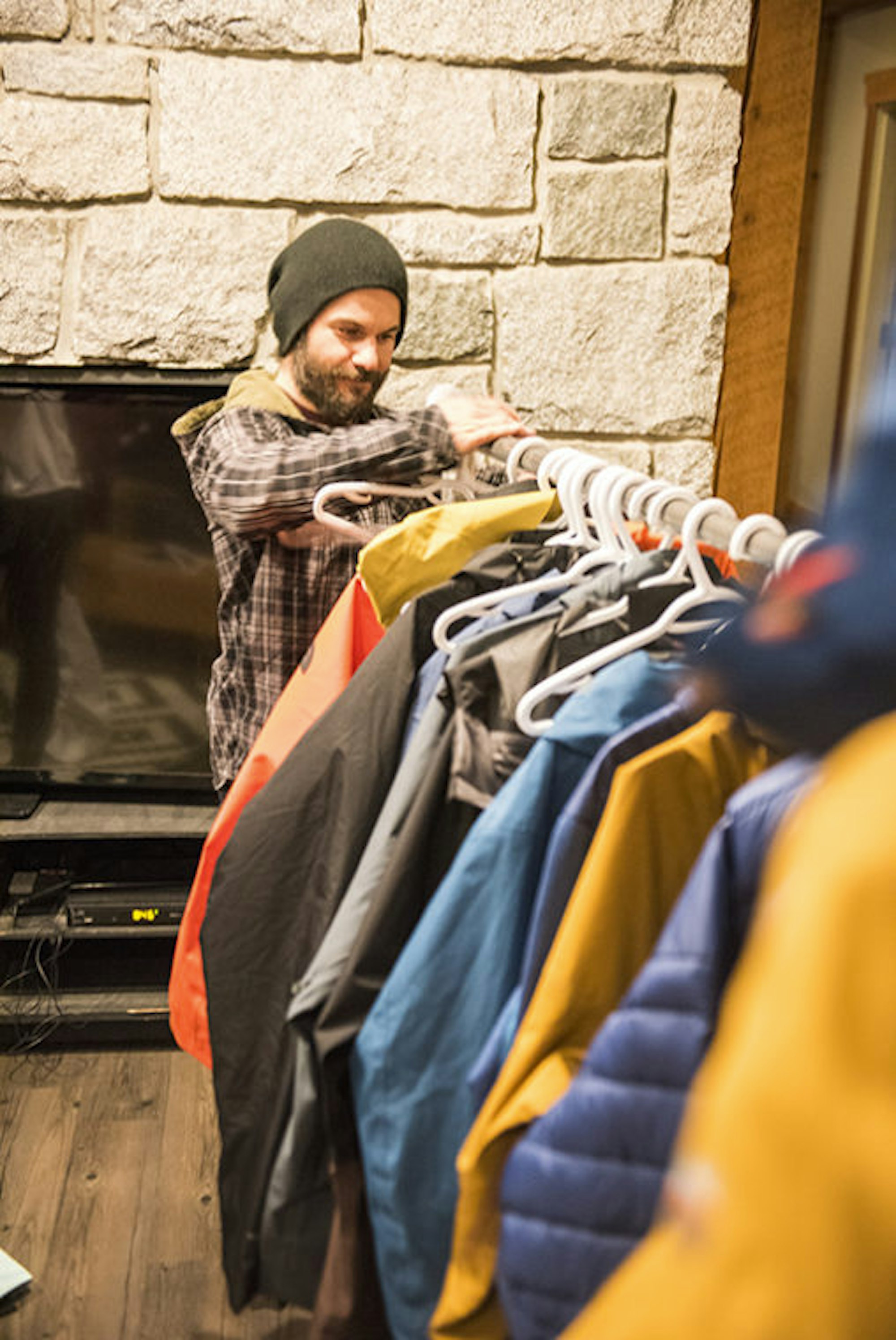 Tester Ben Anderson, rifling through the rack in anticipation of testing next year’s best outerwear.