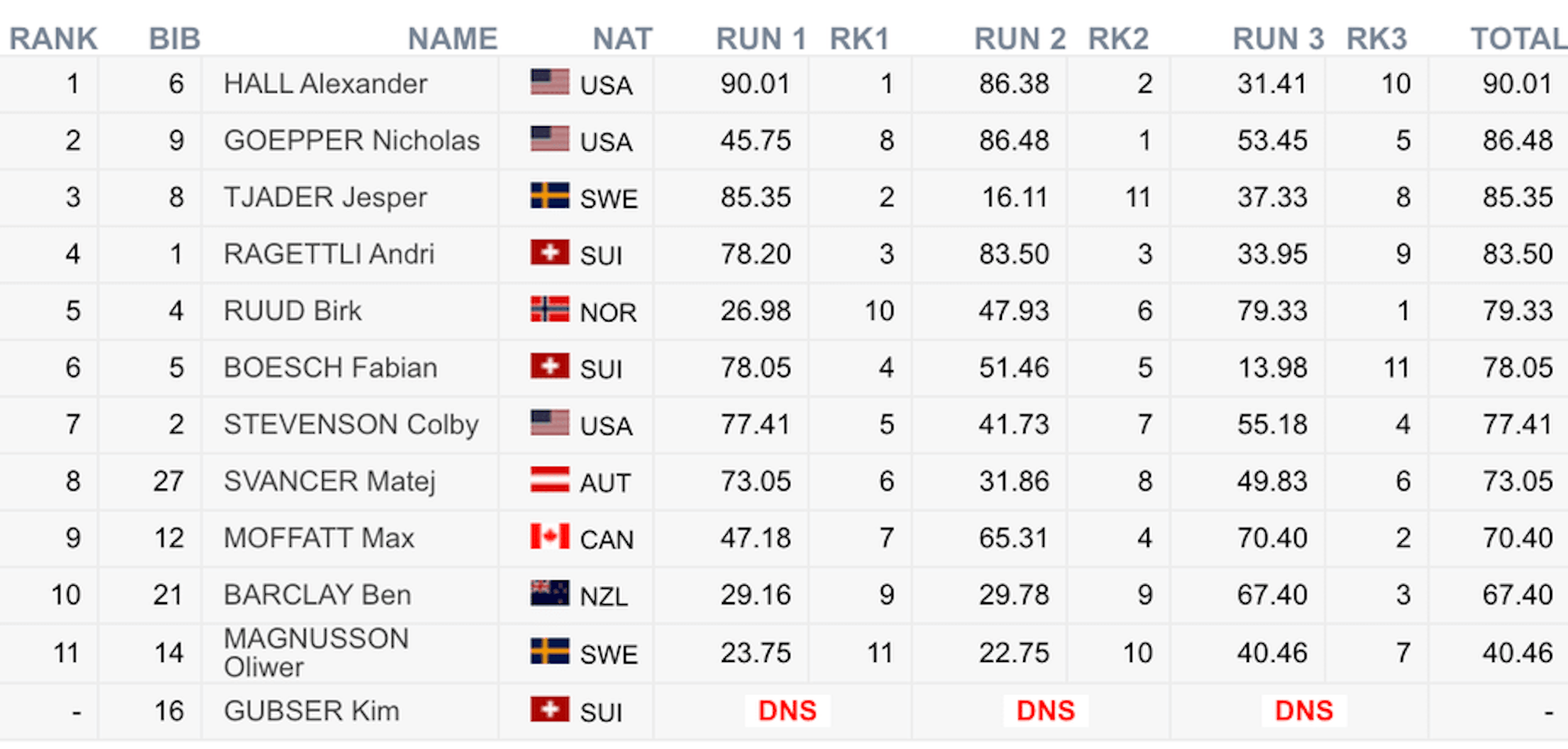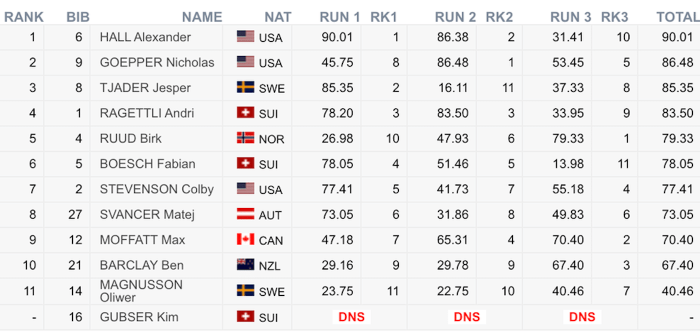 After the event, Hall spoke to journalists at a press conference in Beijing, saying “”It definitely was the best slopestyle run I’ve ever done,” Hall said about his 90.01-scoring winner, “Mainly because it embodied everything I love about skiing and how I approach skiing. I didn’t fade away from that to try and maybe get bigger scores or something.I just kept it true to myself, and I think that’s the most important part about our sport is just doing it for the love and doing it how you want to do it and not changing that.”