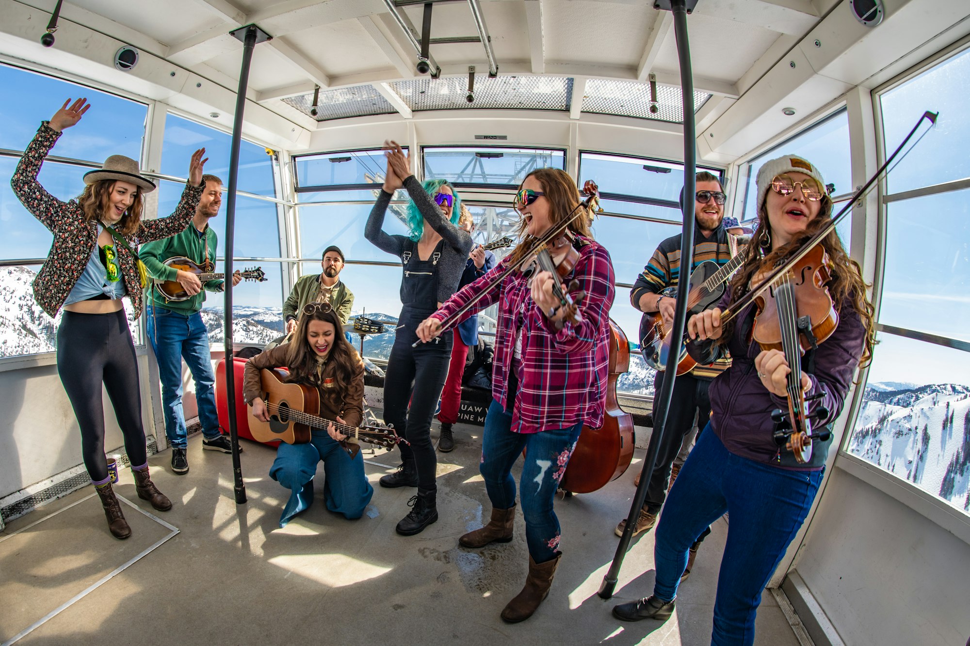 With plenty of the musicians being skiing fanatics themselves, there’s a pretty good chance you’ll end up riding the chair or ripping the same line with WWG talent but the most unique aspect to the Squaw Valley event—that can’t be replicated at the Colorado or Vermont stops—is the spontaneous Tram Jam that happens every year. “It’s kind of rogue,” explains Stoughton. Rather than have a set plan with an announcement to the public, Stoughton and his team treat the Tram Jam like a pop-up event, inviting whichever band is ready and willing to play and a handful of lucky festival goers who just happen to be at the right place at the right time. “All of a sudden, there’s 15 musicians and 15 to 20 people just rocking out on the tram,” Stoughton says with an audible smile.