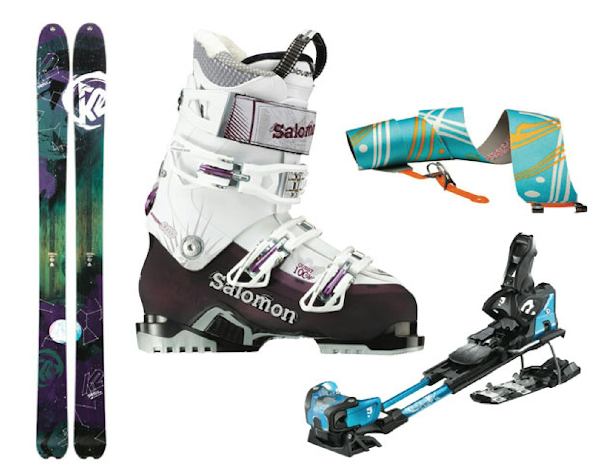 The K2 SideKick offers 108 mm of love at the waist so she’s your best friend on a powder day, but with All-Terrain Rocker where you need it, she’s equally agile. Cruise uphill on G3’s Alpinist Elle Climbing skin—yes, there are women’s-specific skins. They pack small and are equipped with RipStrip, a nontoxic glue that reduces skin-to-skin adhesion, making them easy to pull apart and quickening your transition times. Plus, the versatile tip connector works on almost any ski shape or size.